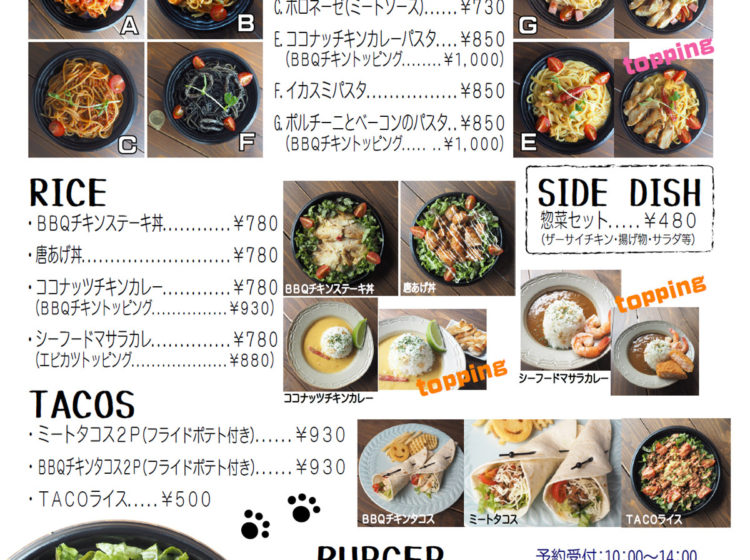 日曜~月曜 10:30 – 14:15 (テイクアウト ラストオーダー 14:00 / お引き渡し最終 14:15)