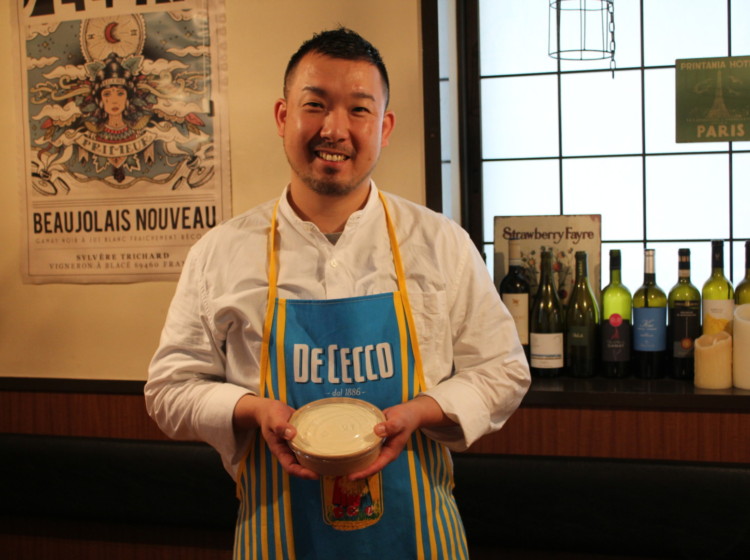 バケットを軽く焼きスプーンですくってのせてもらうとおいしいおつまみ完成!