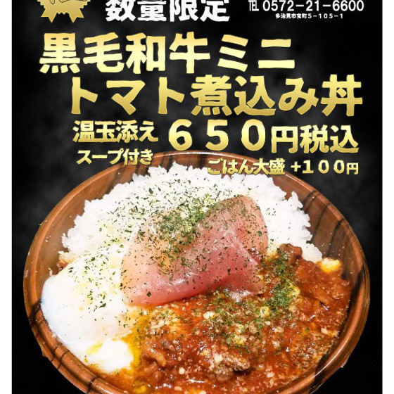 ②黒毛和牛ミニトマト煮込み丼650円などのメニューがございます