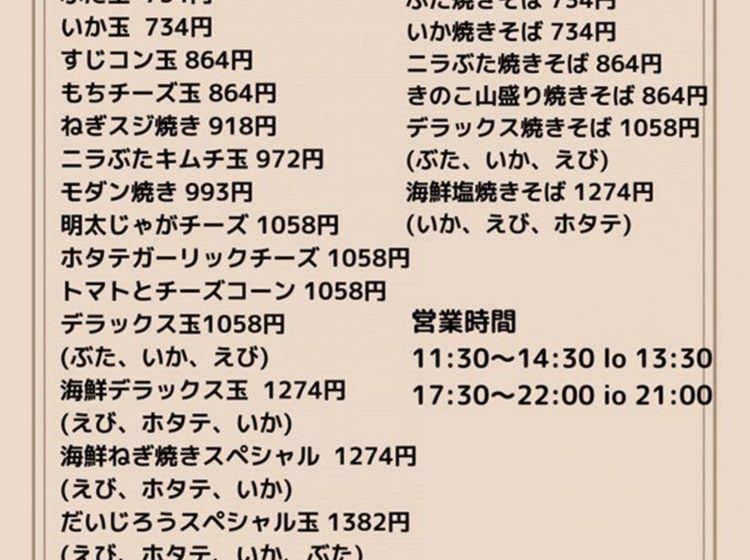 ➀お好み焼き 734円~